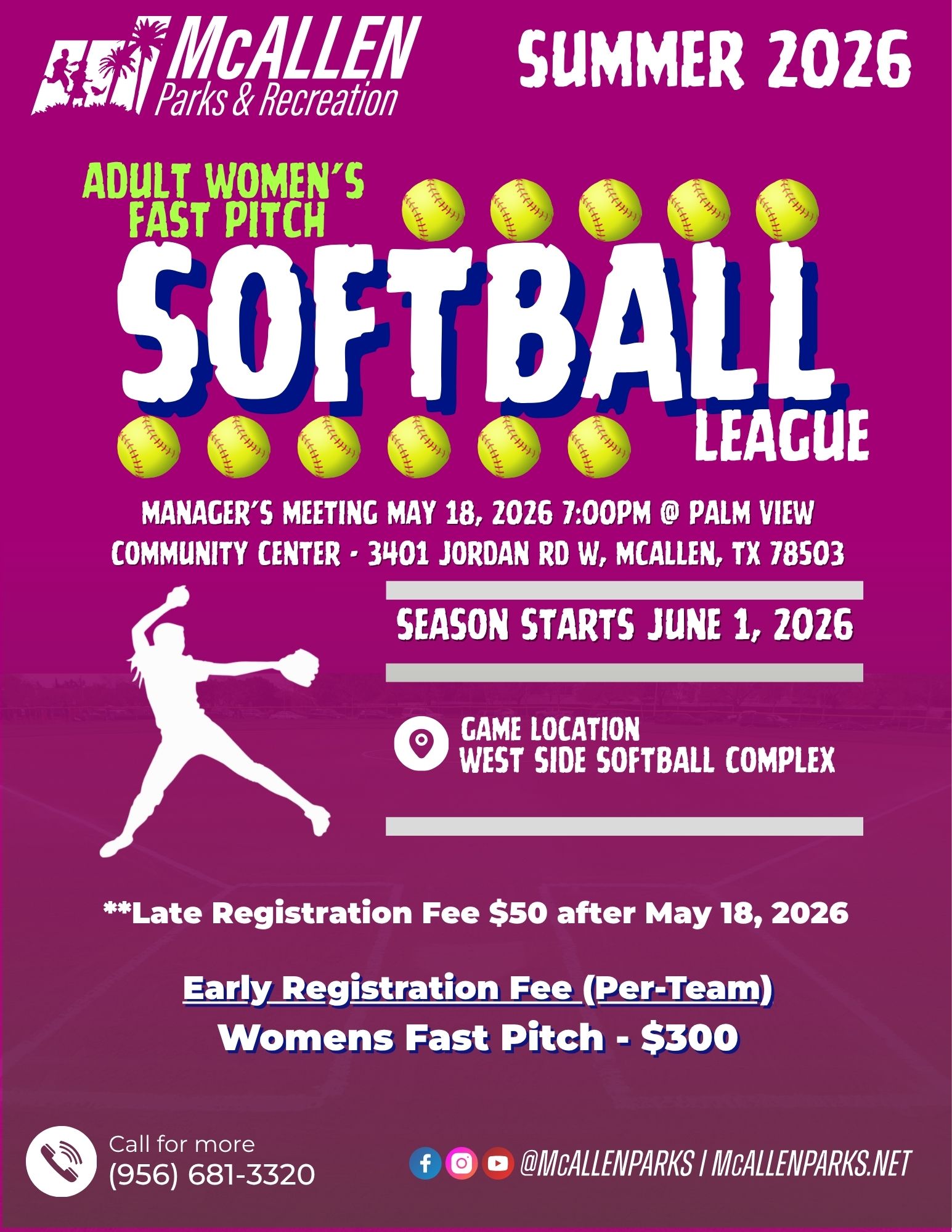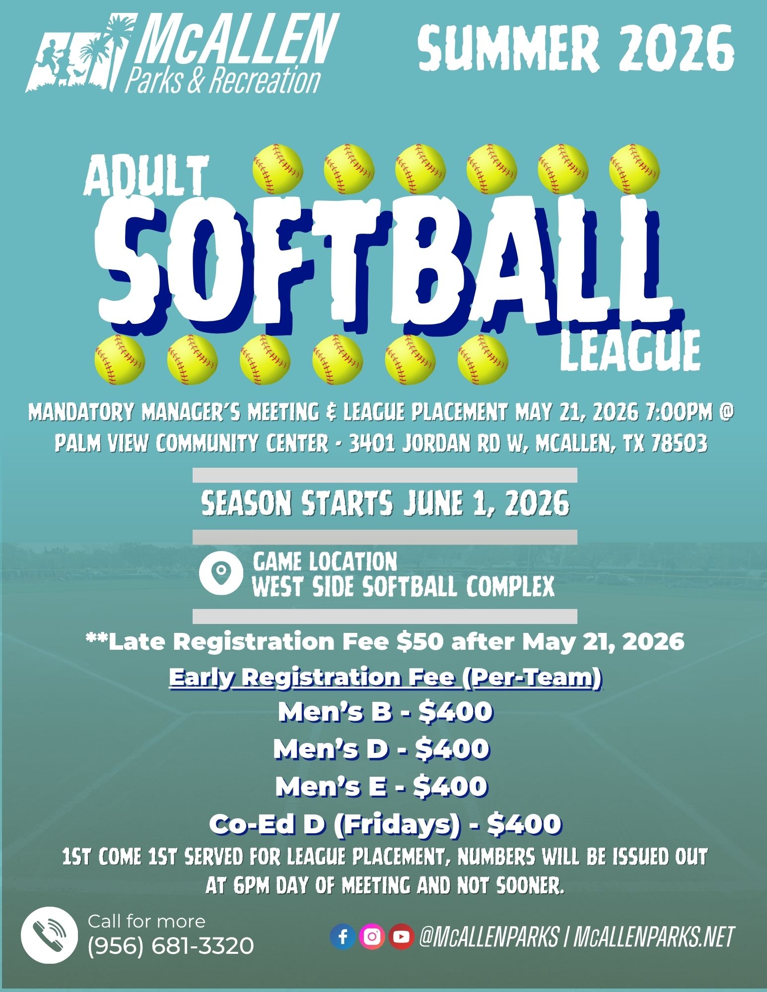 Sign up to Sport You if you like alerts on Softball games cancelation, updates, etc. Access code W2R6DRG3. Group name is McAllen Parks and recreation softball.
