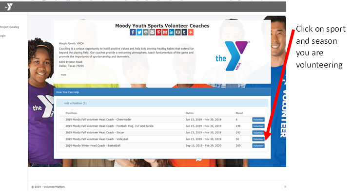 To get started, click on VOLUNTEER and scroll down to the sport and season you will be coaching