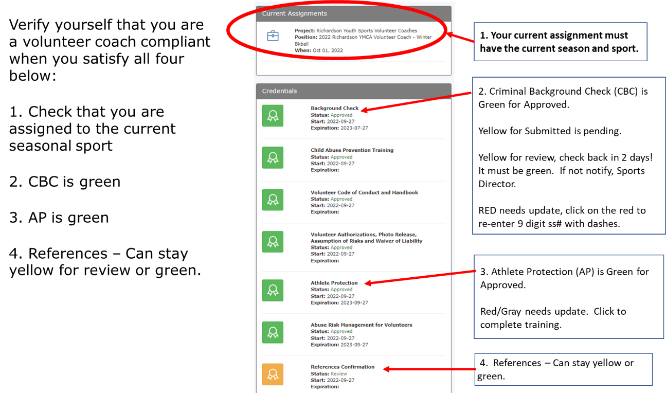 RETURNING COACHES: Must register to add CURRENT SEASON sport in their assignment in Dallas YMCA Volunteer Matters. Update ss# and/or retake Athlete Protection – Check your expiration date!