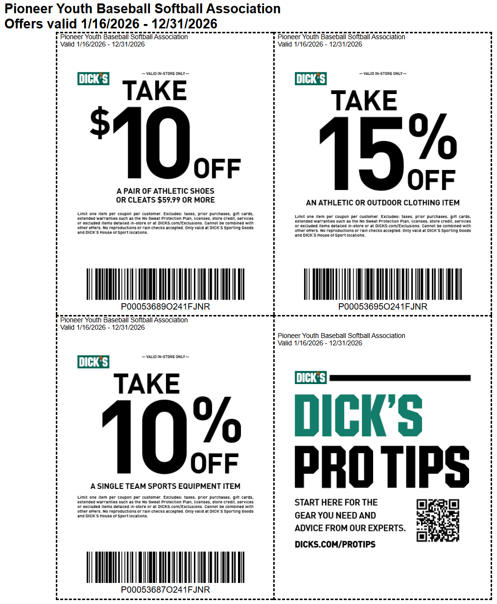 Pioneer Youth Baseball & Softball Association Donations