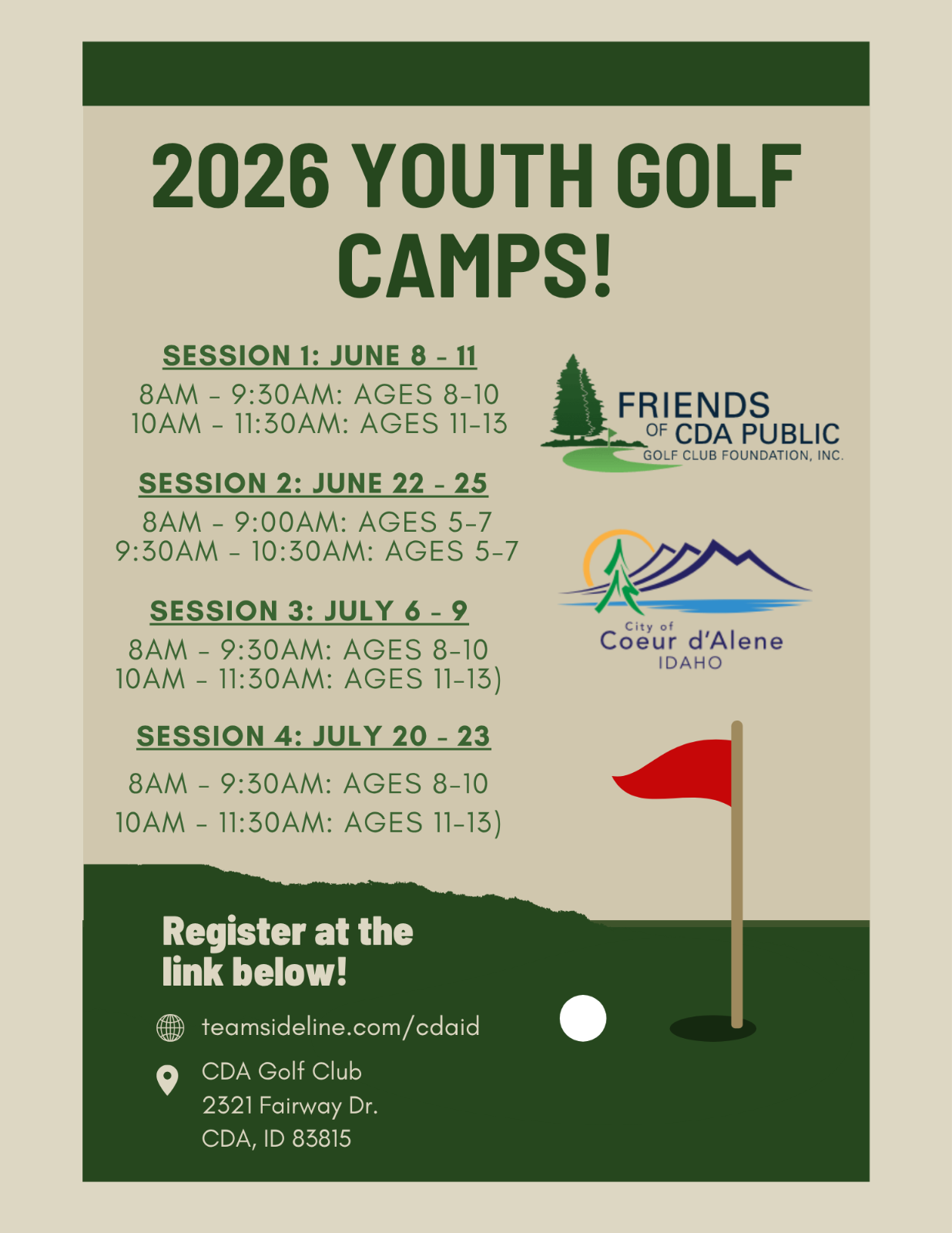 We are pleased this year to build on our partnership with the CDA Public golf course to offer youth golf lessons. These lessons will focus on the basics of golf while being led by PGA professionals with the assistance of the Friends of CDA Public non-profit group.