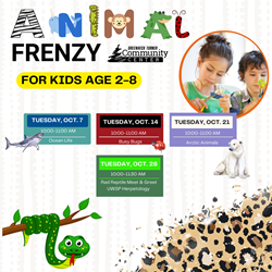 Animal Frenzy Dates & ThemesOctober 7 - Ocean LifeOctober 14 - Busy BugsOctober 21 - Arctic AnimalsOctober 28 - Rad Reptile Meet & Greet
