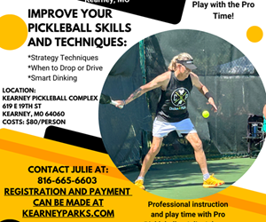 There will be a clinic on Saturday, June 22, 2024 from 9:00 AM - 11:00 AM at the Kearney Pickleball Complex, 619 E 19th St, Kearney, MO.