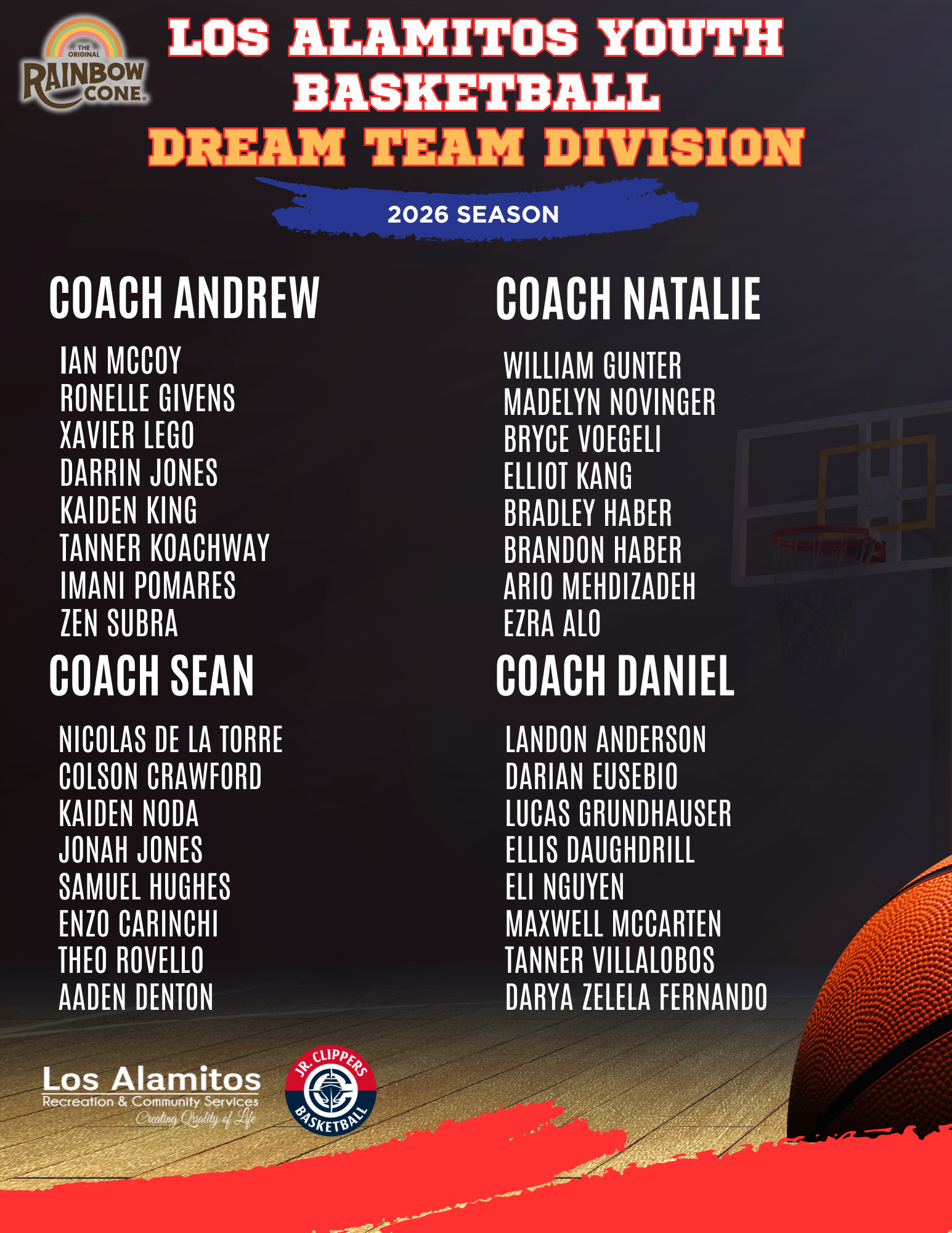 All games are played at the Oak Middle School Gym (10821 Oak St., Los Alamitos)