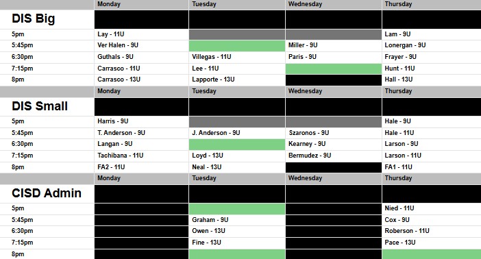 SPRING 2026 PLAYOFF ASSIGNED PRACTICES - Will be released mid-season.