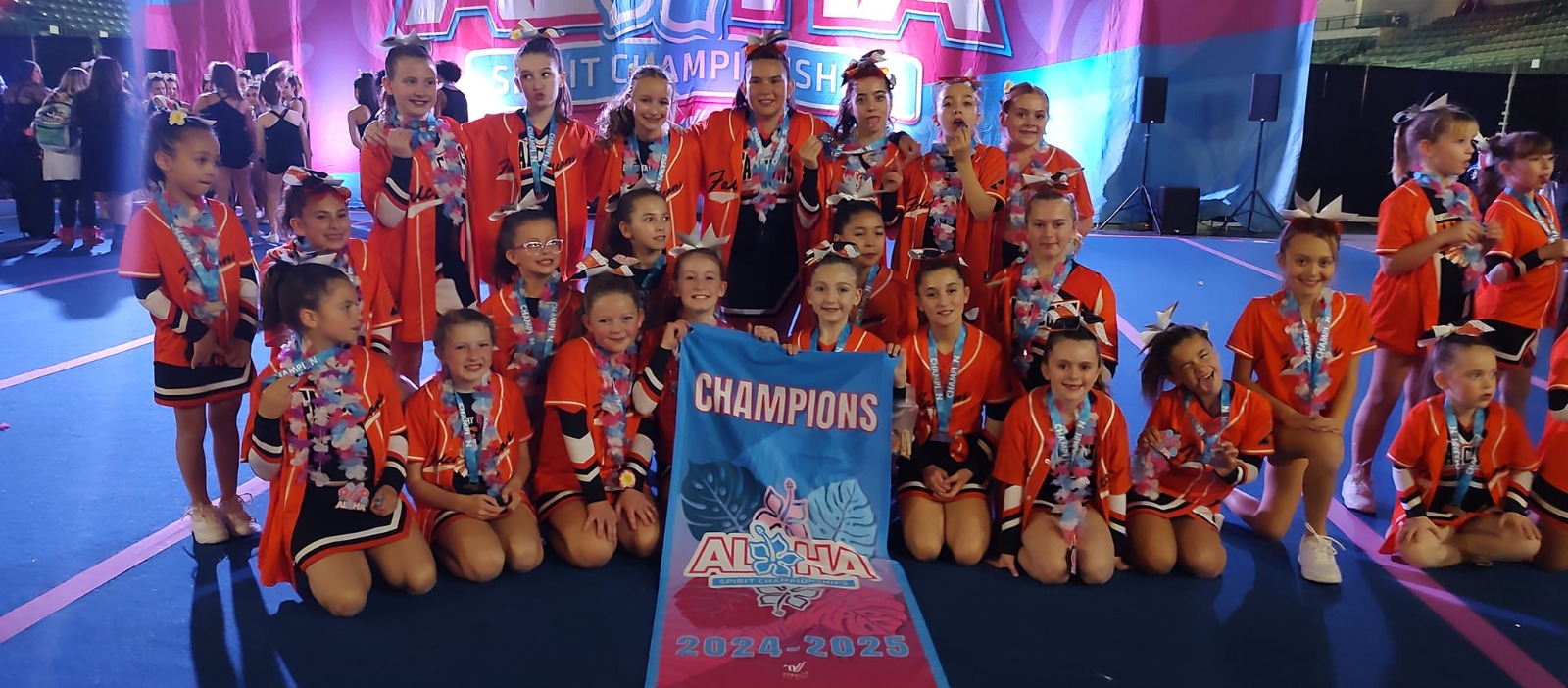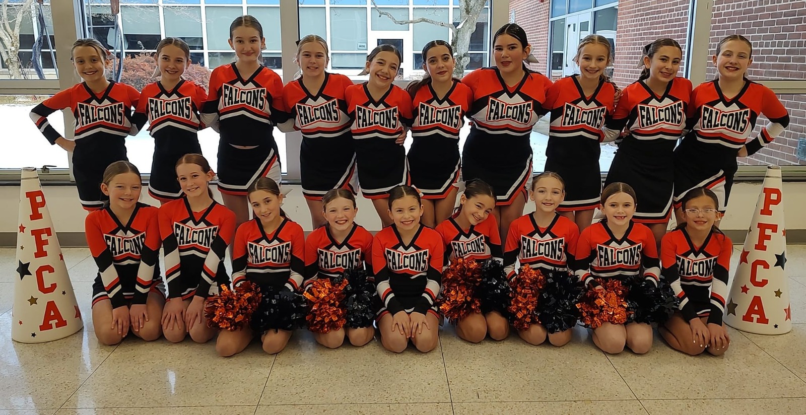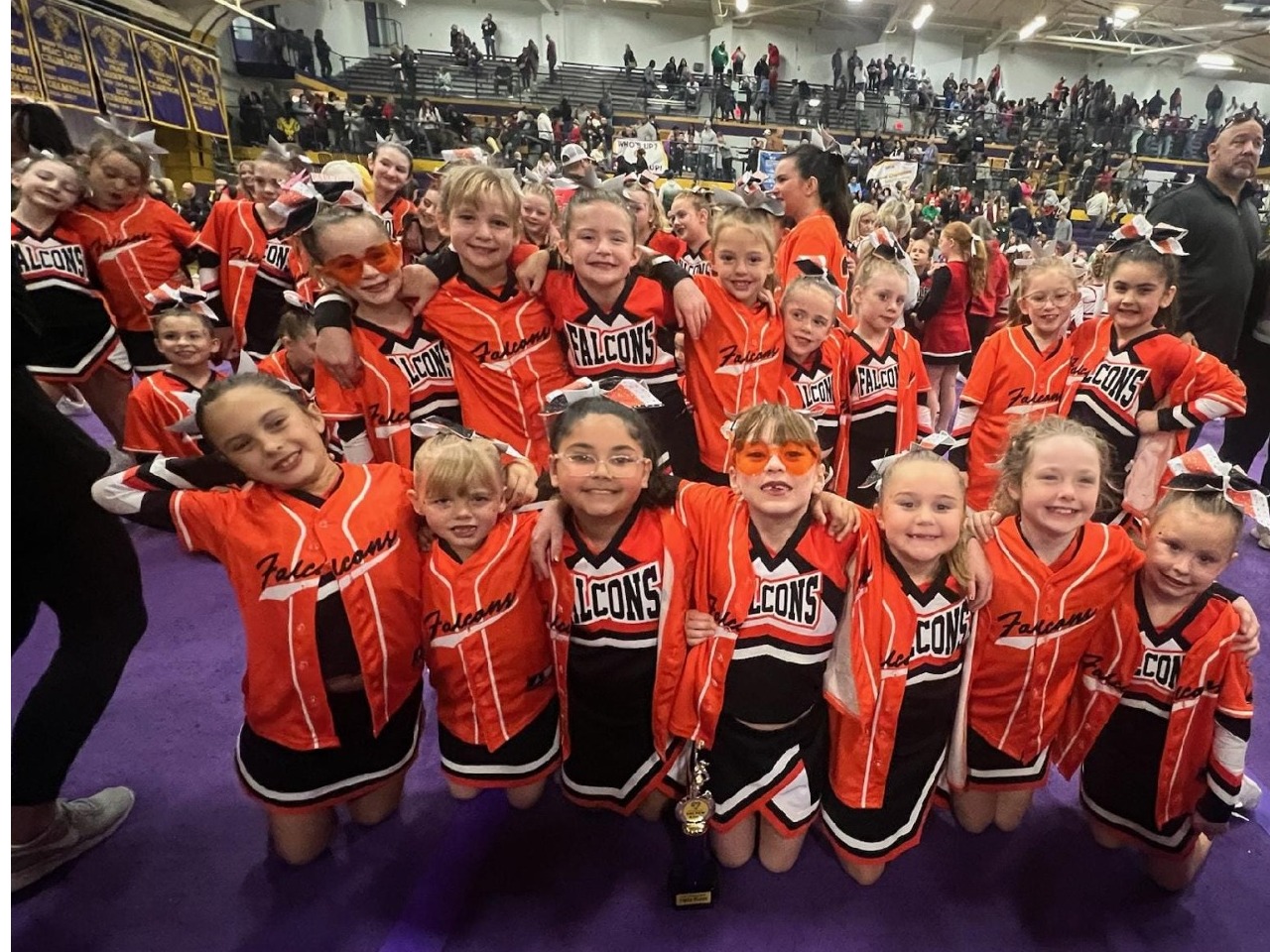 Our award-winning competition team competes in local and regional competitions running from November through February. Athletes have practice two times a week. No prior cheerleading experience is required. Our main goals are to HAVE FUN and learn some great skills! We love to spread our love of cheer while fostering great team building skills and helping our young athletes grow as people.