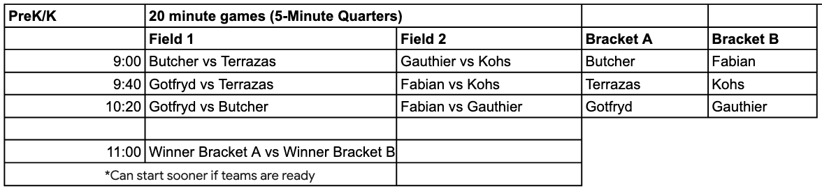 TOURNAMENT SCHEDULE - OCTOBER 25TH
