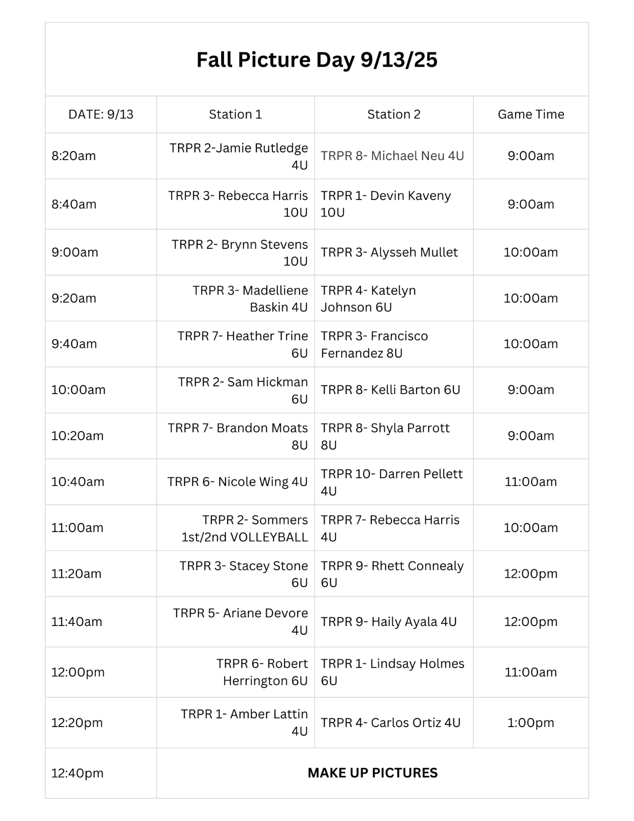 Practices can be any day Monday-Thursday.